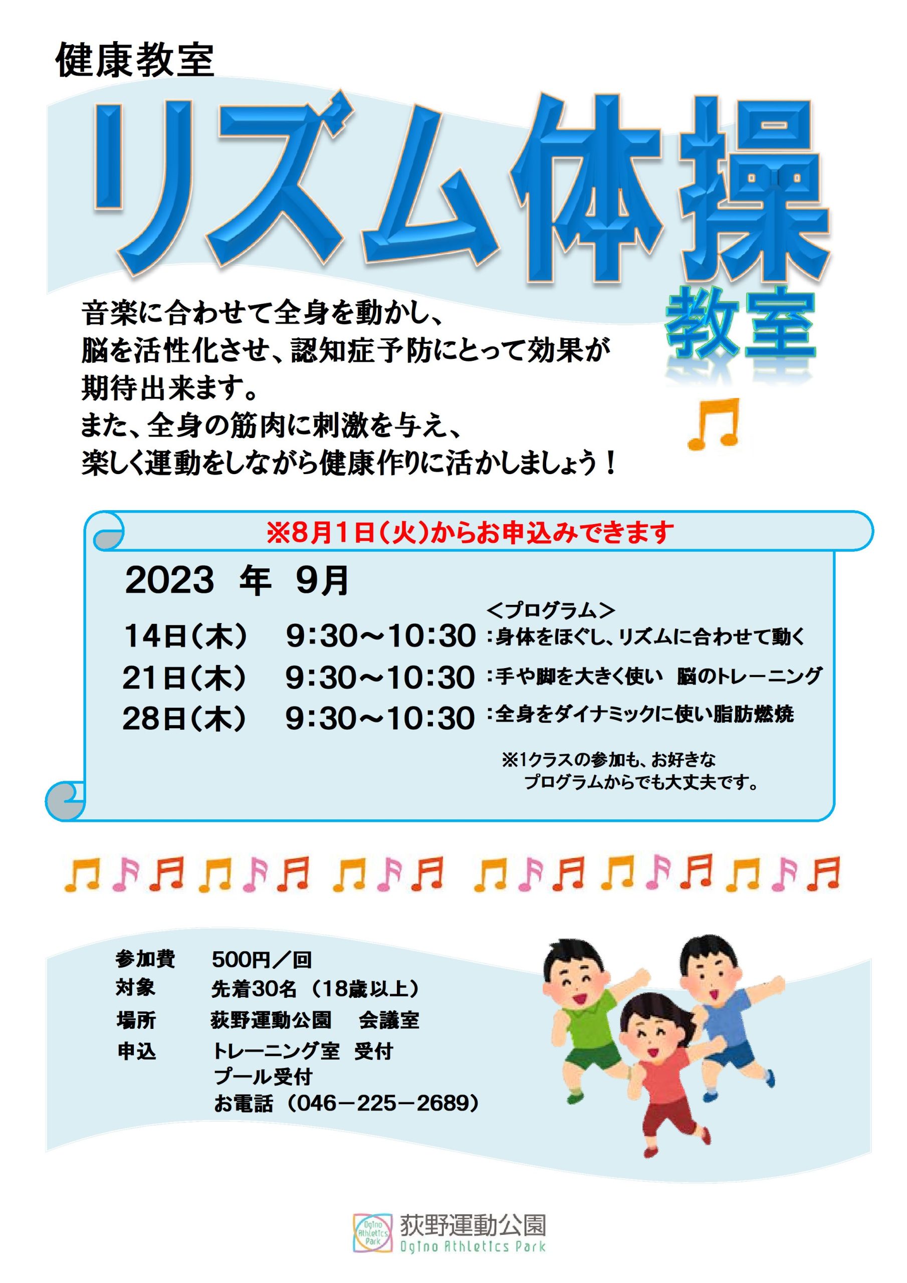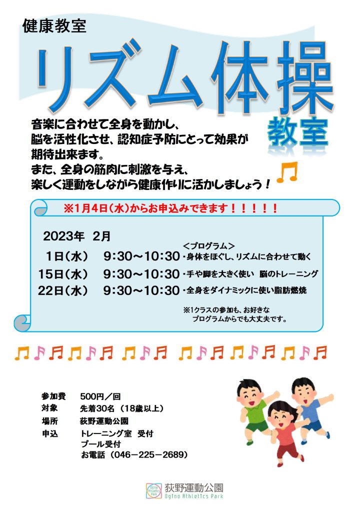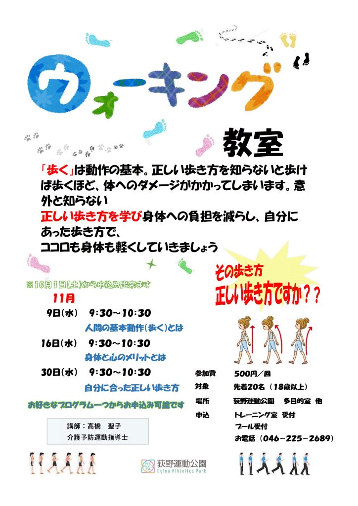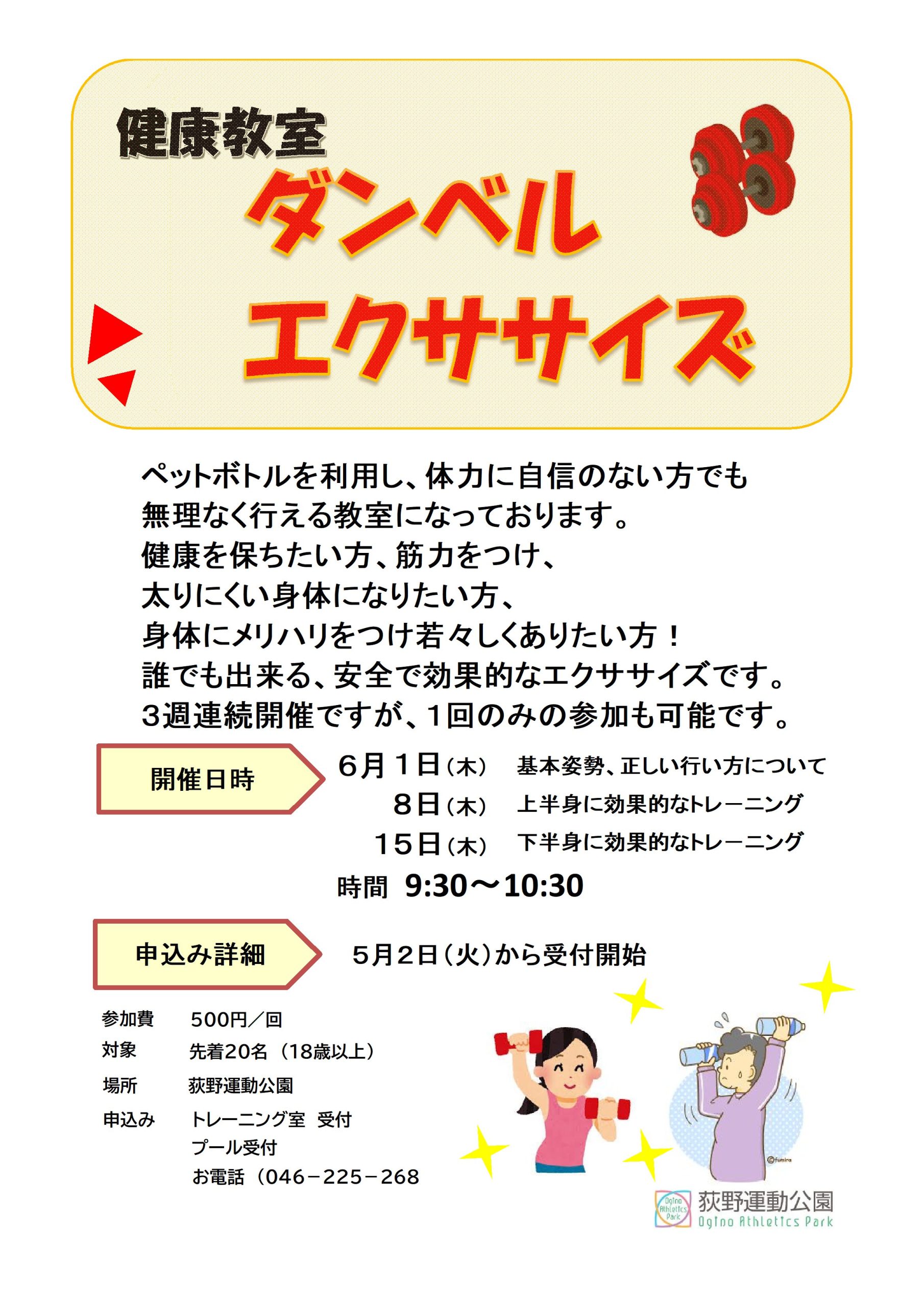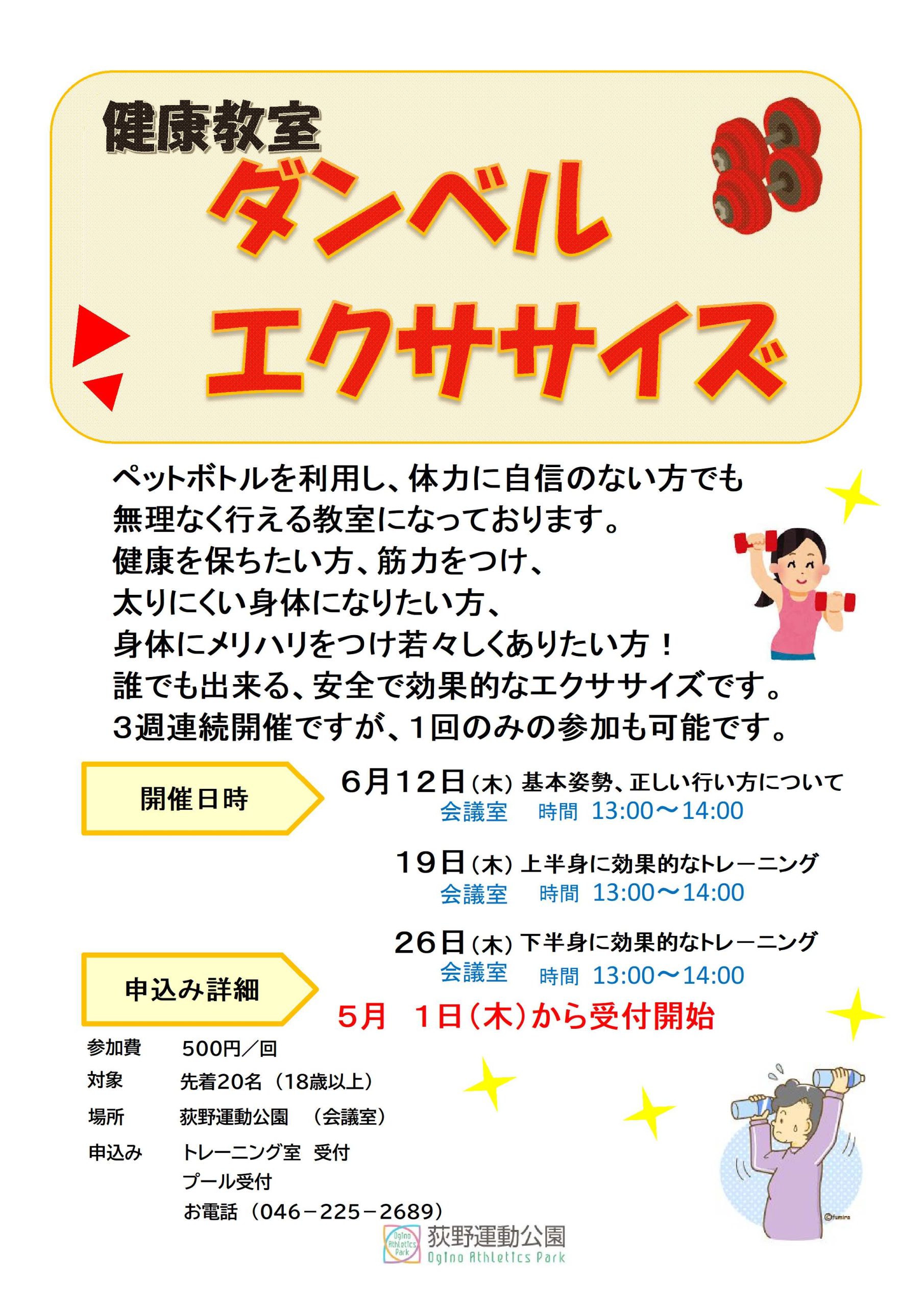 申 込:荻野運動公園トレーニング室またはプール受付 電話 046-225-2689