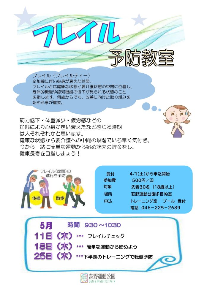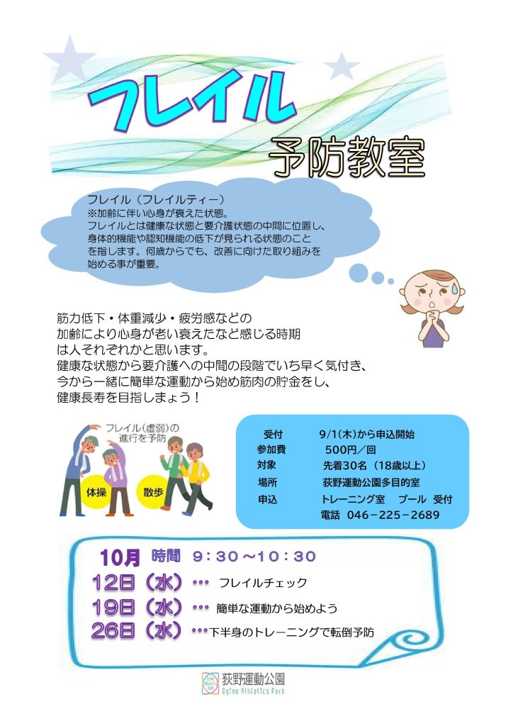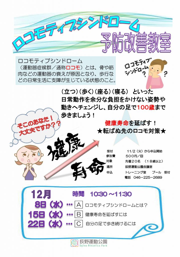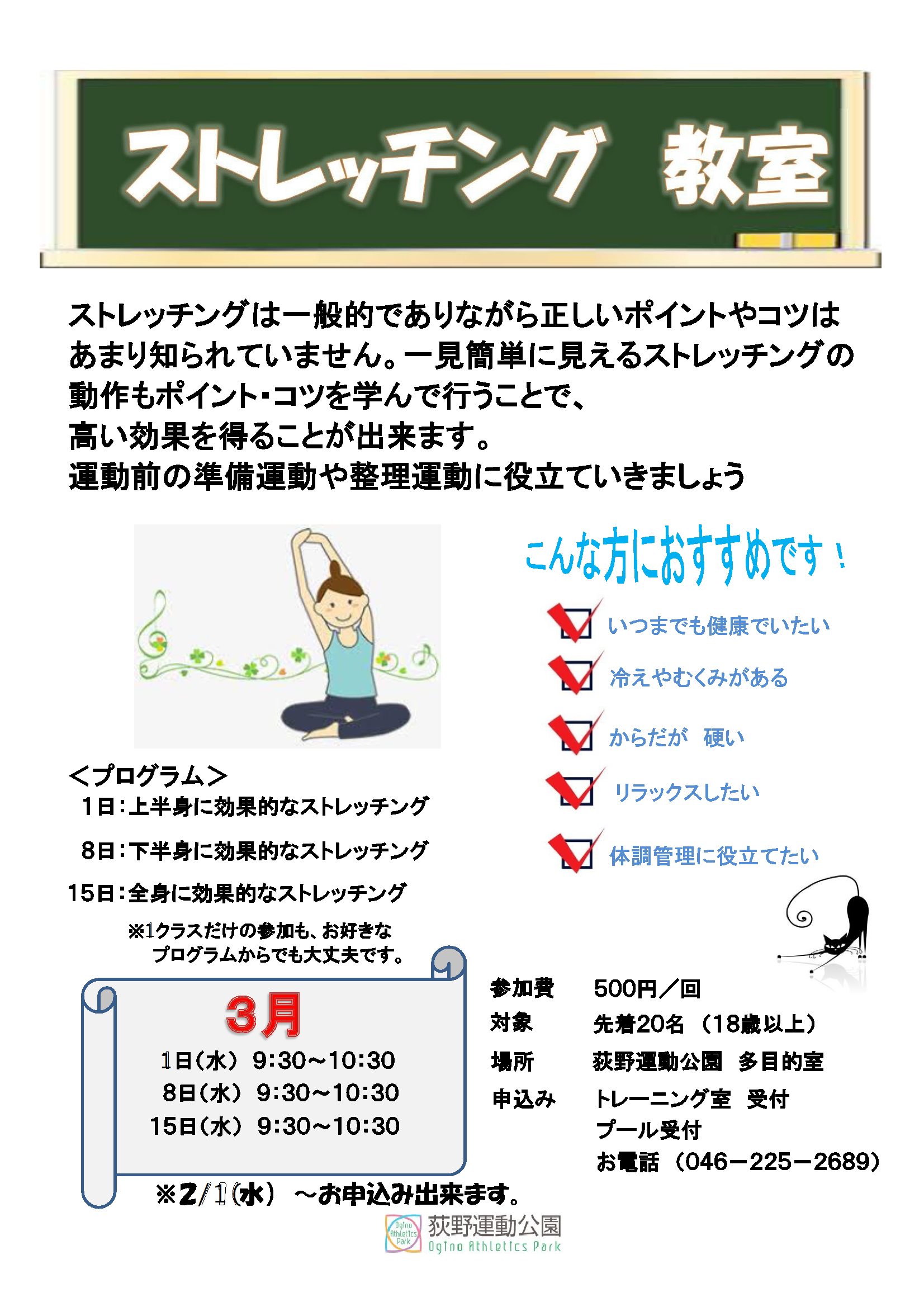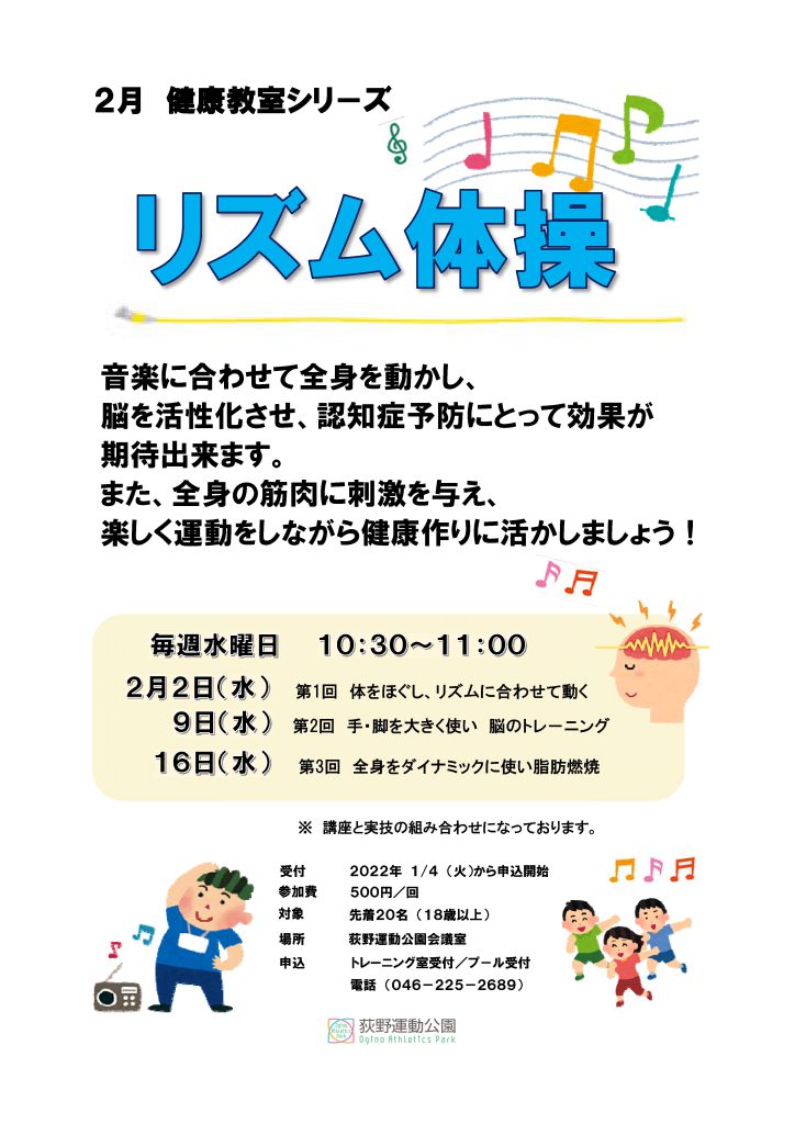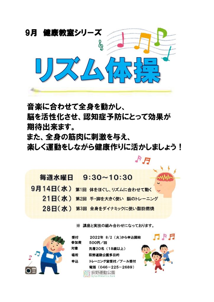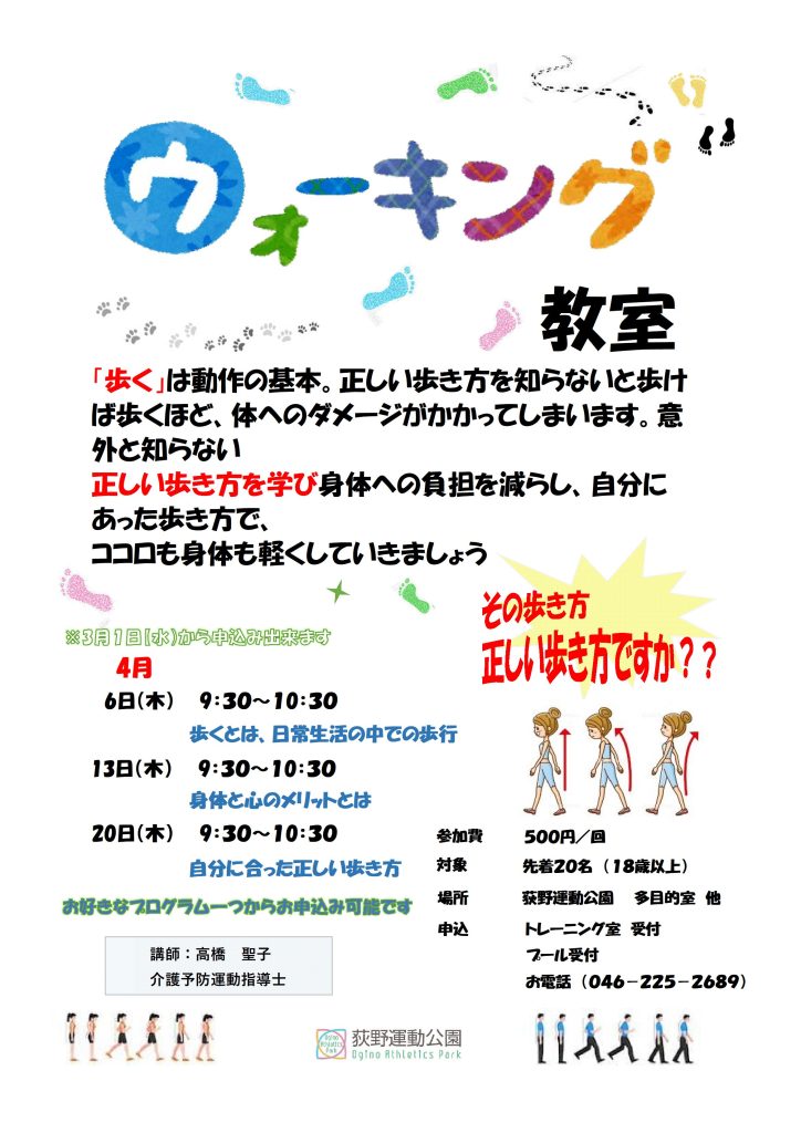 申 込:荻野運動公園トレーニング室またはプール受付 電話 046-225-2689