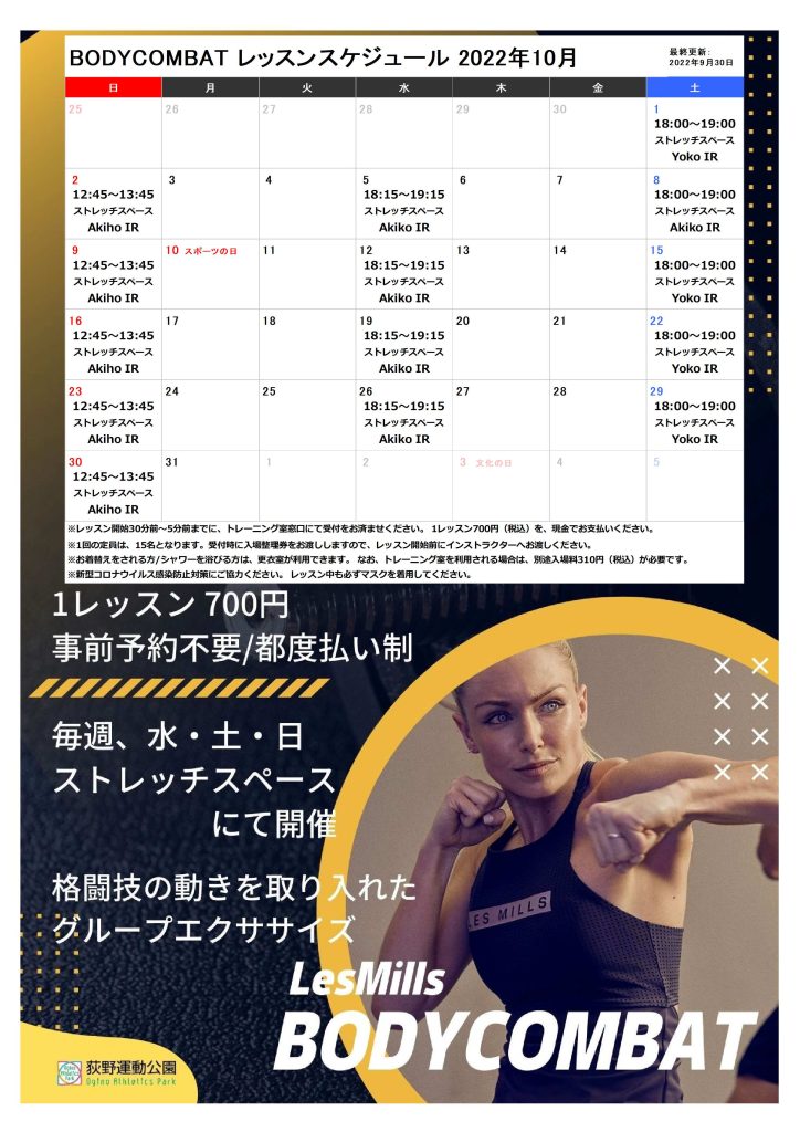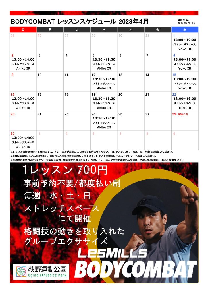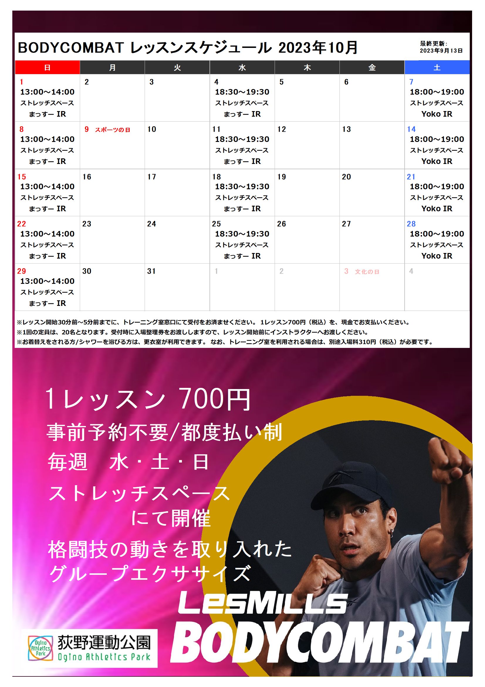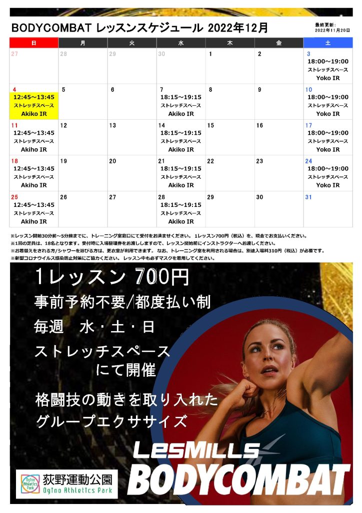 2025年12月 レッスンスケジュール BODYCOMBAT&BODYATTACK