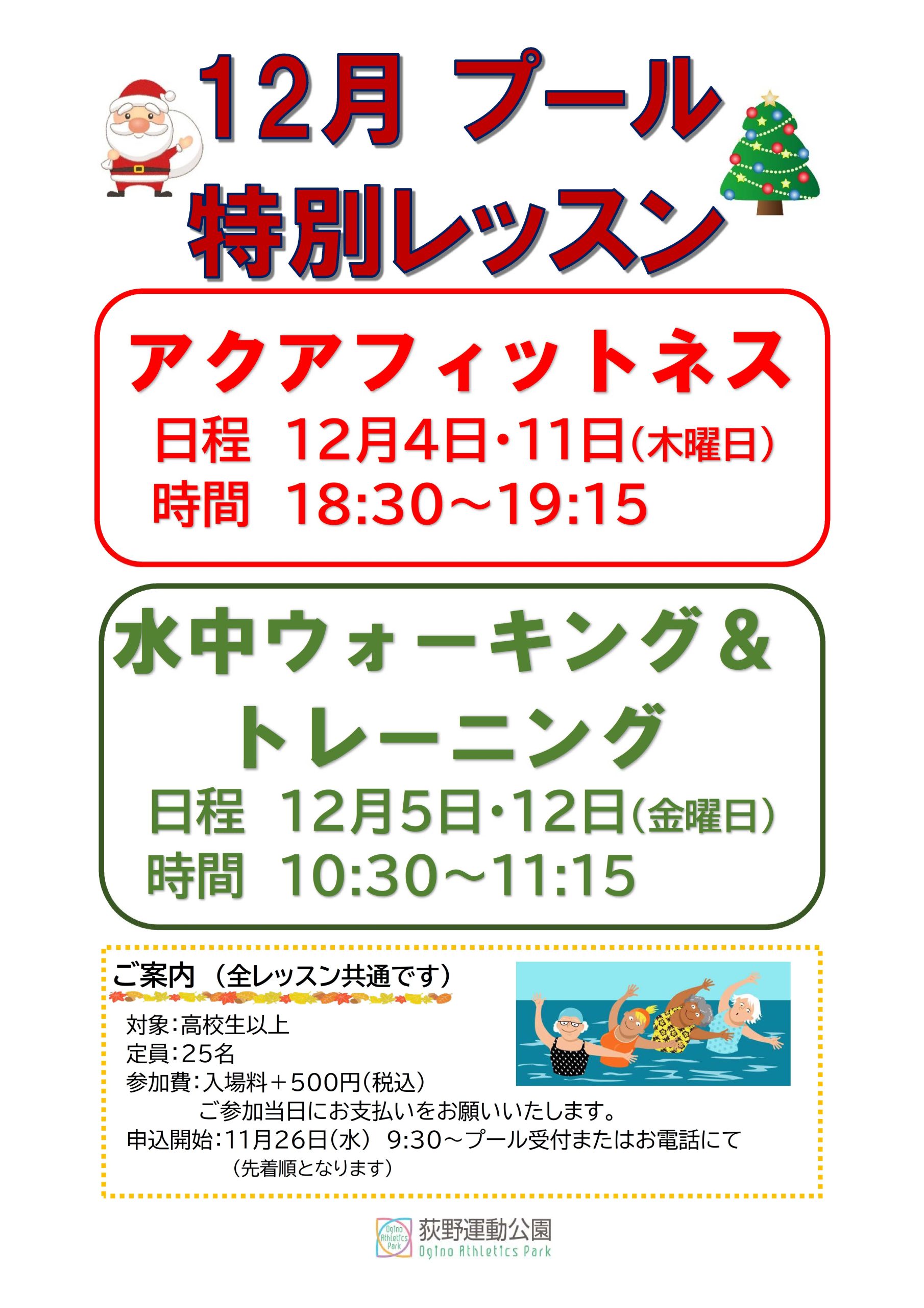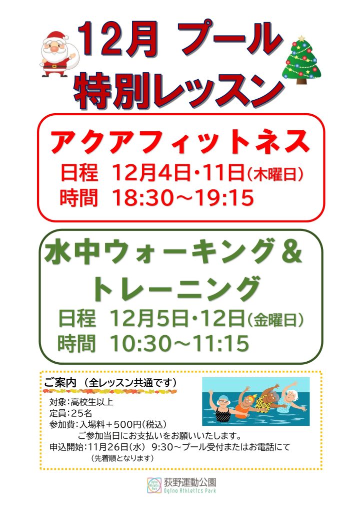 12月中に屋内25mプールにて特別レッスンを開催します!